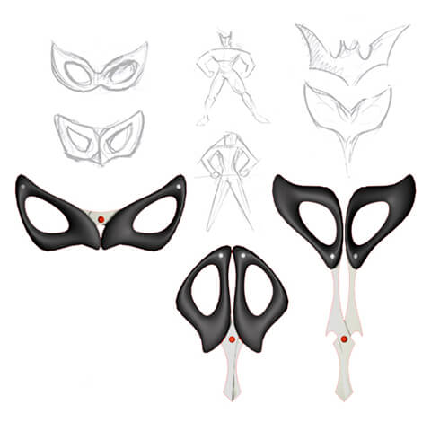 Scissors inspired by Batman. Can be used in three different ways.